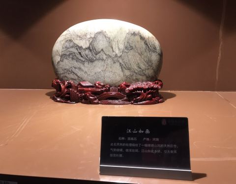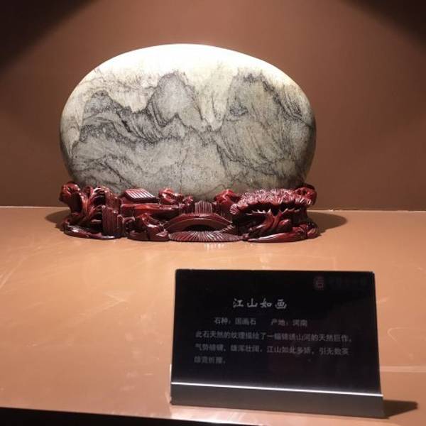 中华赏石园分石博馆、淘宝城、赏石园林三大部分中华赏石园分石博馆、淘宝城、赏石园林三大部分。这里展览的石头涵盖造型石、图纹石、矿物晶体石、化石、特种石五大门类,种类繁多,这是一幅富有江南神韵的清新画卷,村舍依傍,河泊连片,草长莺飞,很有魅力。