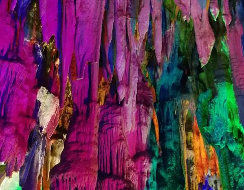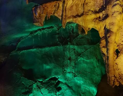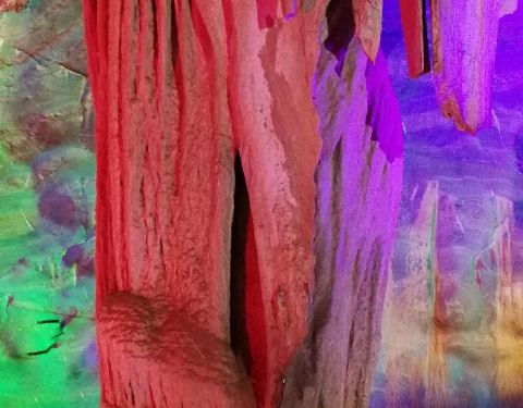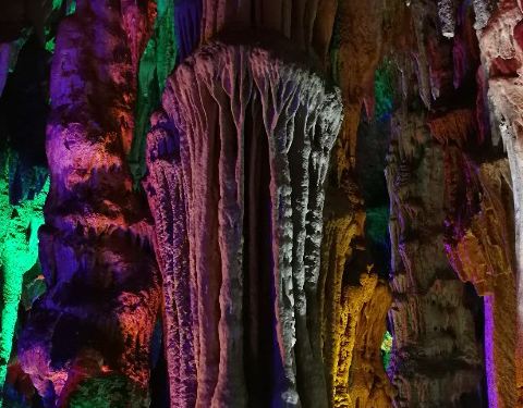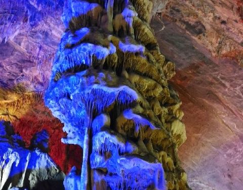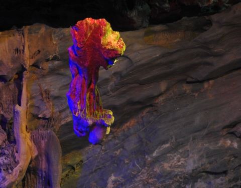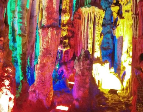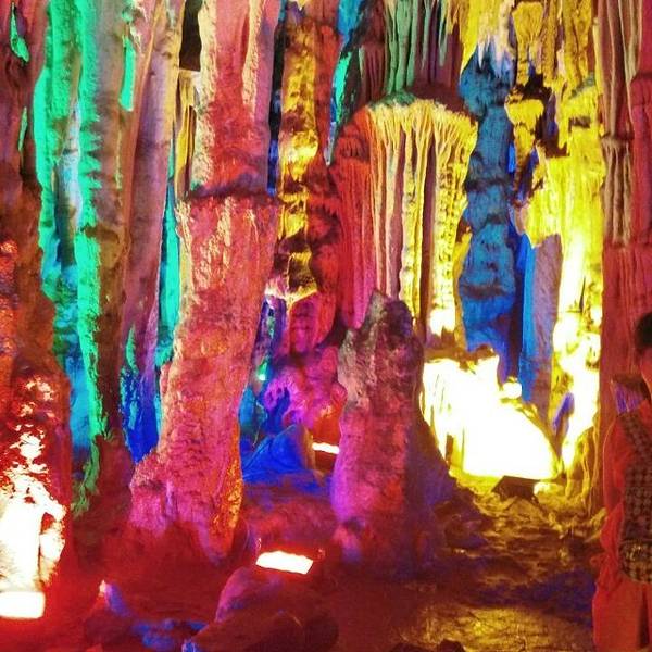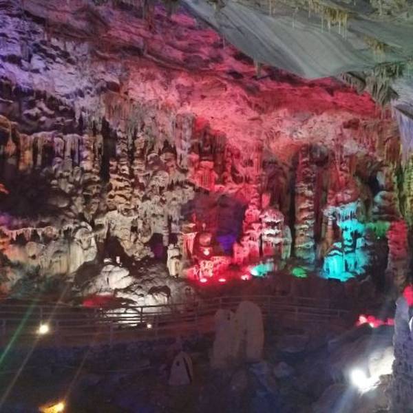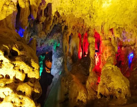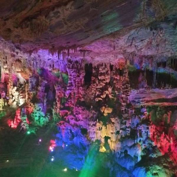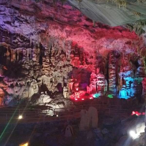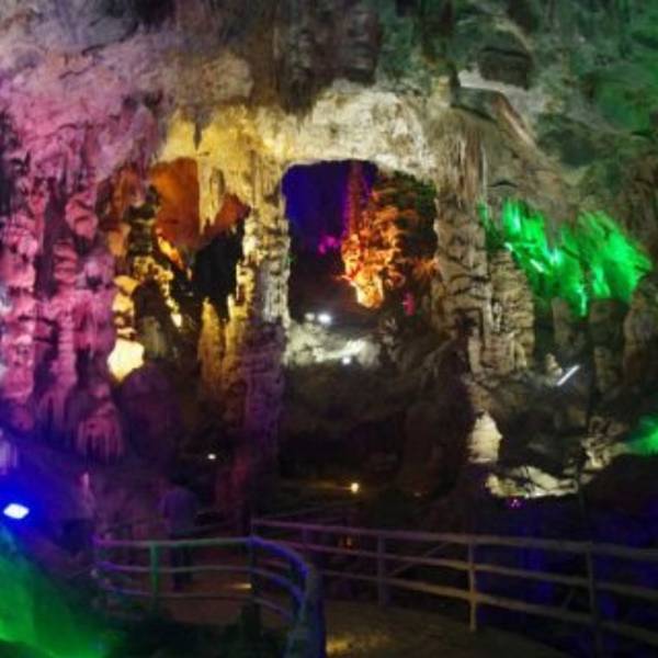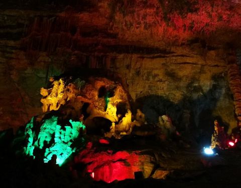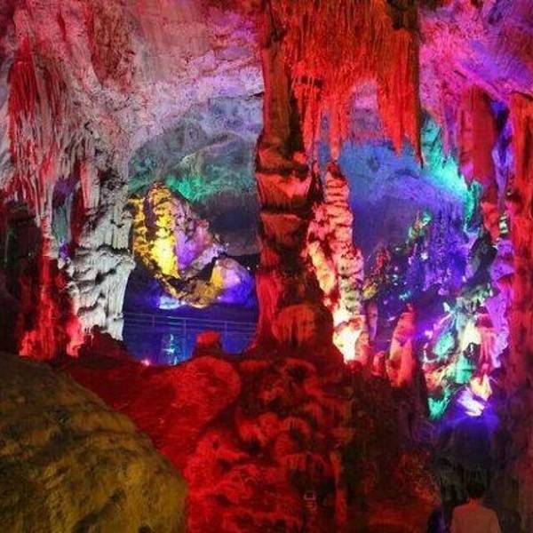 溶洞很多,这个很别致,主要是灯光设计投射不错,看上去非同一般,此外山洞在半山腰,上下要走很长一段栈道,有点辛苦,洞有两个,一个是兔子洞,不大,回头走月亮洞,下山后要走一段约800米公路回到停车场。