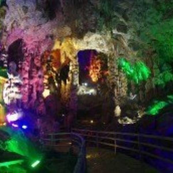 主要是灯光设计投射不错,看上去非同一般,此外山洞在半山腰,上下要走很长一段栈道,有点辛苦,洞有...溶洞很多,这个很别致,主要是灯光设计投射不错,看上去非同一般,此外山洞在半山腰,上下要走很长一段栈道,有点辛苦,洞有两个,一个是兔子洞,不大,回头走月亮洞,下山后要走一段约800米公路回到停车场。