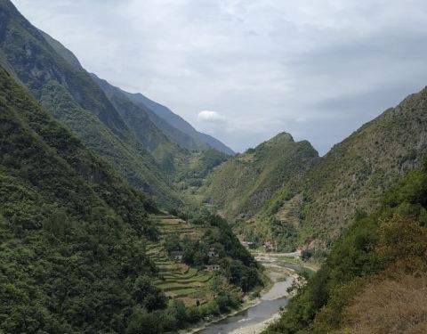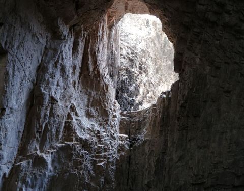 从天蓬山寨杨地镇往东,二十来公里就到了。景区是个溶洞,从公路大门爬到洞口,拾阶而上,拔高二百七八的样子。 左右两个洞,小的哪个是玉兔洞,进去不深,原路返回。月亮洞据介绍1.5公里。单向路线,出洞一路台阶下来,走到入口以西约一公里的地方,沿公路走回去取车。 看介绍还有漂流什么的,我没见。 从山阳方向来路况还行。平日去游客不多,有包场的感觉。