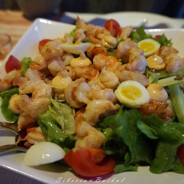 推荐大虾沙拉,超大一份,好吃不贵海鲜汤,料很足...晚餐在Figaro吃的,伊尔库茨克排名第3的餐厅,环境不错,但是性价比不高,餐厅位置在130街区附近。餐厅内有一个服务员会讲中文,有英文菜单,但是菜单上无图片。