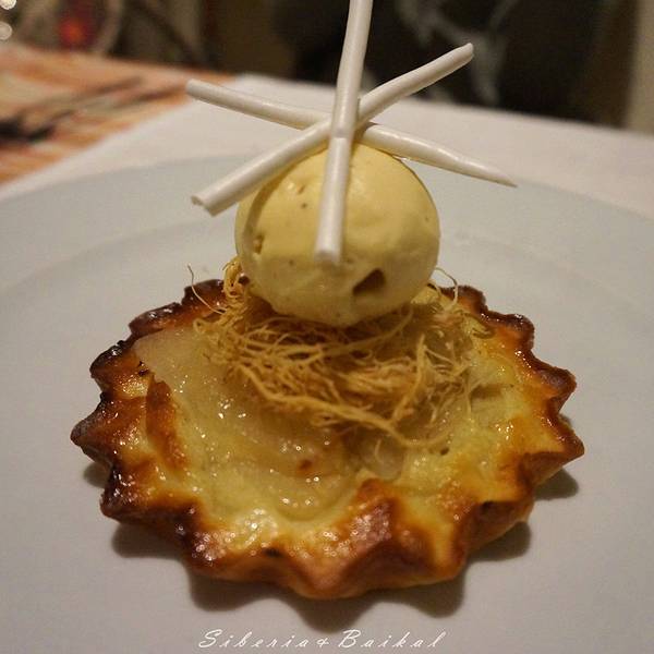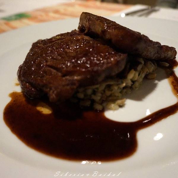 晚餐在Figaro吃的,伊尔库茨克排名第3的餐厅,环境不错,但是性价比不高,餐厅位置在130街区附近。餐厅内有一个服务员会讲中文,有英文菜单,但是菜单上无图片。 推荐大虾沙拉,超大一份,好吃不贵海鲜汤,料很足,味道不错。说一下这里有名的红菜汤我们来的第一晚就吃了,感觉并没有什么特别,所以后面就没有再点Pear tart味道很不错,强烈推荐。香草冰淇淋球、焦糖、热梨子片,最好吃的一道甜品这份牛排有点坑,点餐的时候服务员就一直跟我们讲没有点主食,她推荐了牛排,也没有让我们选择,直接帮我们点了一份超级贵的牛排!最后结账的时候,竟然吃了4300卢布