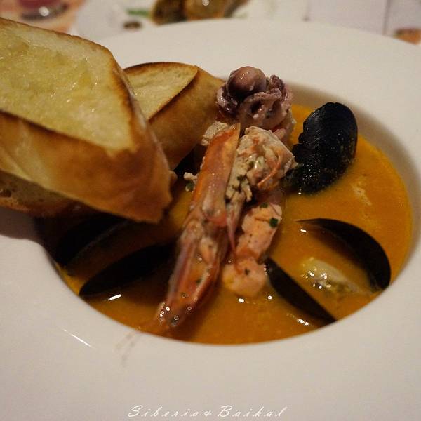 晚餐在Figaro吃的,伊尔库茨克排名第3的餐厅,环境不错,但是性价比不高,餐厅位置在130街区附近。餐厅内有一个服务员会讲中文,有英文菜单,但是菜单上无图片。 推荐大虾沙拉,超大一份,好吃不贵海鲜汤,料很足...