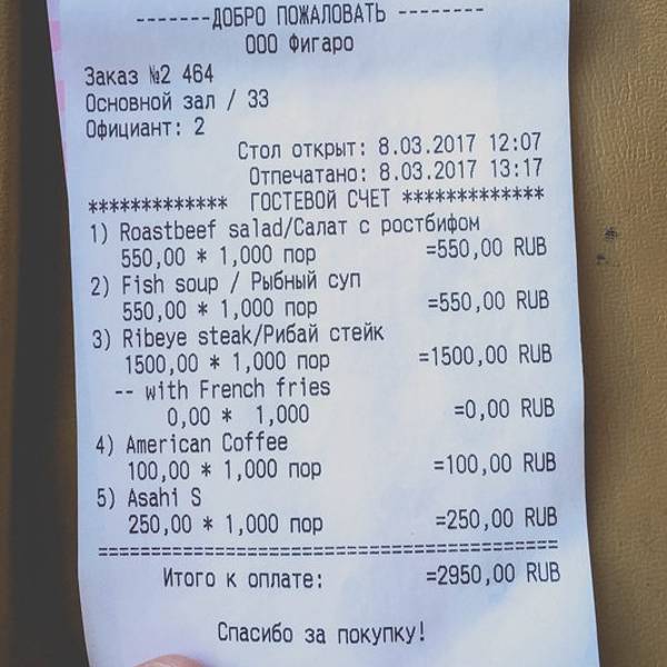 其实Figaro就在和列宁大街的交汇处,位置很好找但是不容易找见,因为没有想象中的大招牌,已经站在餐厅门口了还仔细寻找半天才看见,差点以为已经关门了。店里的装修风格挺文艺的,这是吧台处。找了个靠窗的位置坐下。 接待我们的服务生是长着东亚面孔的帅哥,真的很帅,讲一口流利的英文。看到这个也是醉了,加了伏特加的Russian coffee可还行。 特别后悔没有点一杯,最后一天去BBB吃饭时想点,可惜那边没有。coffee addictor因为母乳已经忍了一年多,终于解禁。赠送的餐前小面包。 通过几天的生活,我感觉面包在此的地位相当于馒头米饭对于中国人,是主食。送的甜品。后来来了个老奶奶服务员,推荐我们点了这个三文鱼沙拉。还有虾汤。这个牛肉也是老奶奶推荐的。送的薯条。送的餐后甜点。吃饭时隔窗看到了自家车的俄罗斯款,很是亲切。一顿饭吃了2950,相当于人民币300多,相当不错了。这种逼格的西餐在北京吃不得500块?