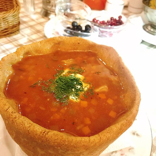 通过几天的生活,我感觉面包在此的地位相当于馒头米饭对于中国人,是主食。送的甜品。后来来了个老奶奶服务员,推荐我们点了这个三文鱼沙拉。还有虾汤。这个牛肉也是老奶奶推荐的。送的薯条。送的餐后甜点。吃饭时隔窗看到了自家车的俄罗斯款,很是亲切。一顿饭吃了2950,相当于人民币300多,相当不错了。这种逼格的西餐在北京吃不得500块?