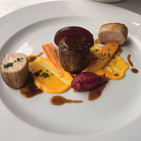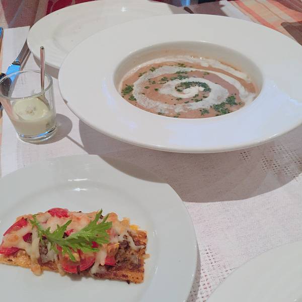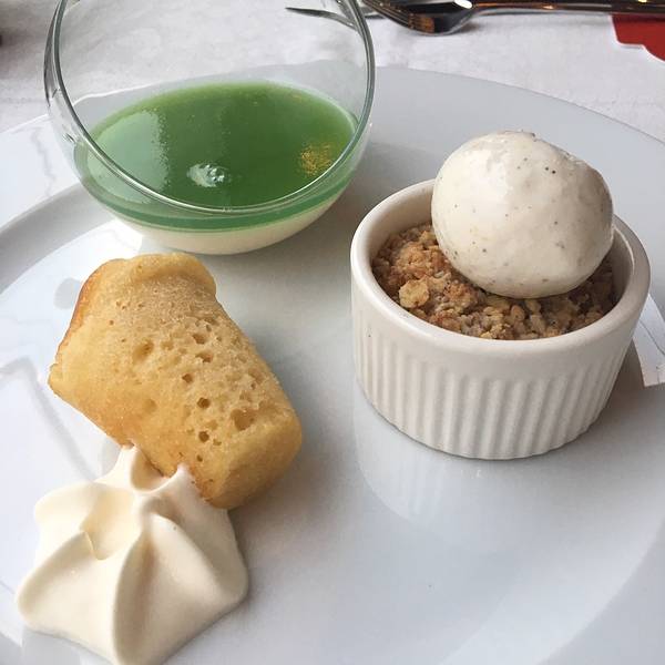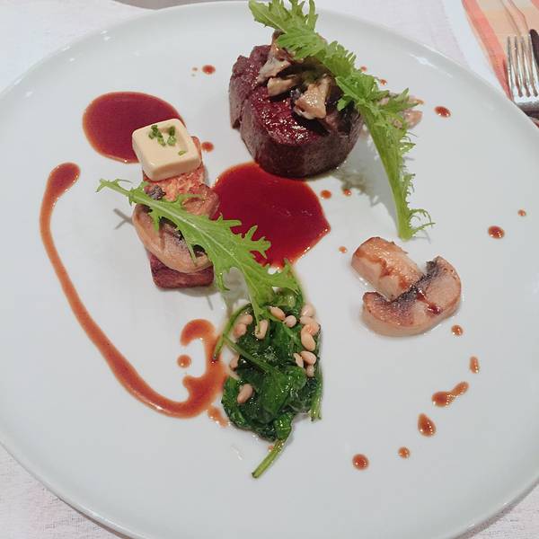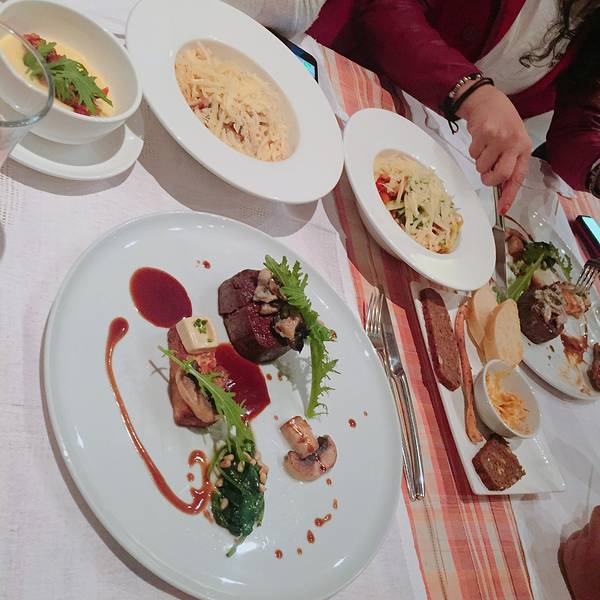 - 前菜和意面都比较惊艳,正餐反倒有点让我们失望了。主菜羊排,让我们有点小小的失望,略咸也不是很好嚼