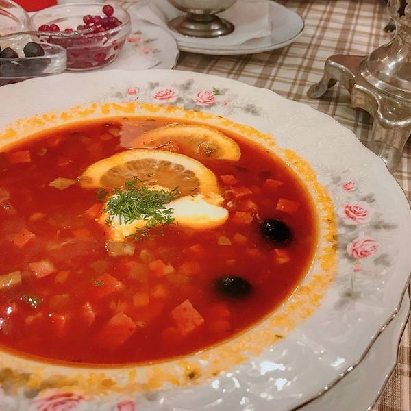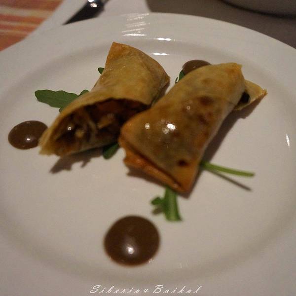 地址:Karla Marksa St.22, Irkutsk 664003, Russia 这是我们下飞机后第一餐,在马克思大姐那儿,据说在猫途鹰上排名还蛮高的,我们满怀期待进店,嗯,有衣柜,有帅招待,有温馨的装修。第一印象不错,然后上菜单,很奇怪是一份商务菜单,我们觉得可能是中午的特色,只能选商务餐,便都点了商务餐。之后……无比后悔!据店里其他单点的 中国 小伙伴说,东西很好吃,味道很可口。唯独我们店的商务餐真的如!同!嚼!蜡!虽然他卖相还不错,但真的很难吃。所以我们给大家试毒后,大家再进餐厅一定要单点菜品!