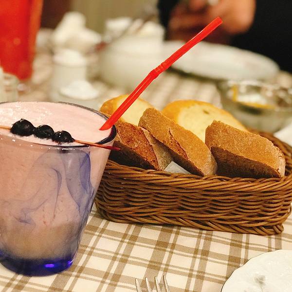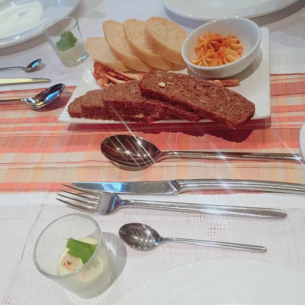 - 推荐虾仁沙拉和牛排,意面我只吃了两口,餐前赠送的面包和不知名的东西(图上粉色的)也不错