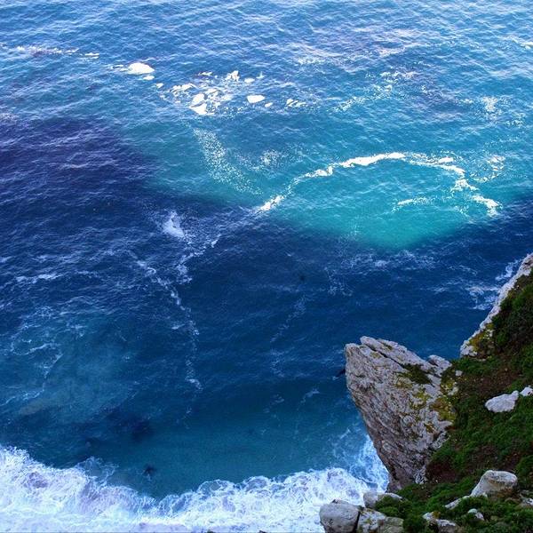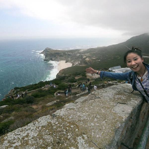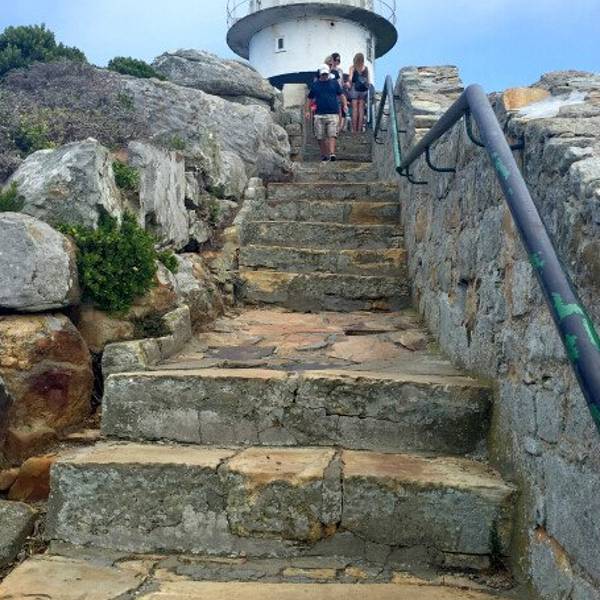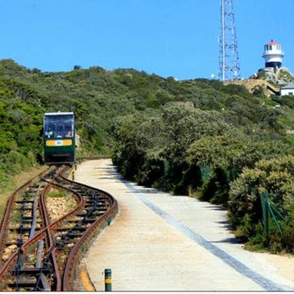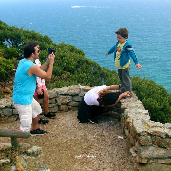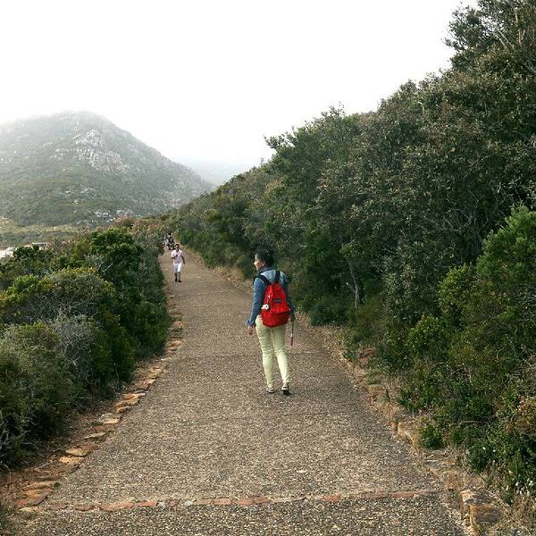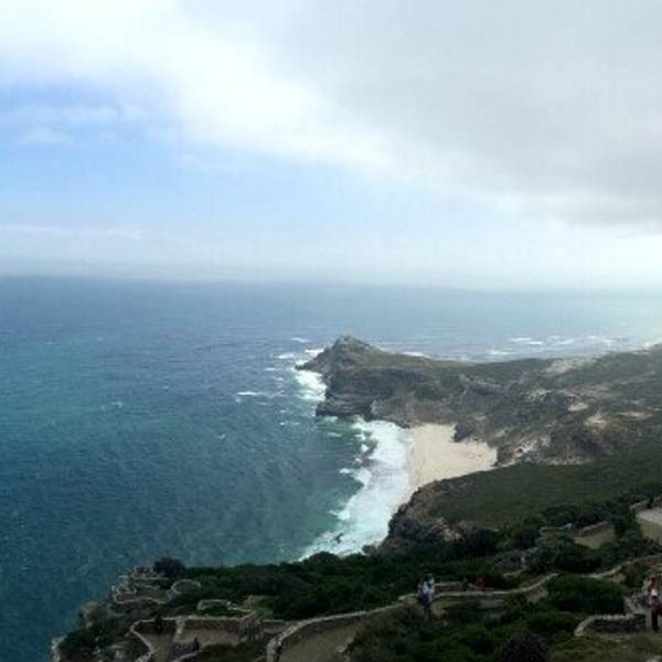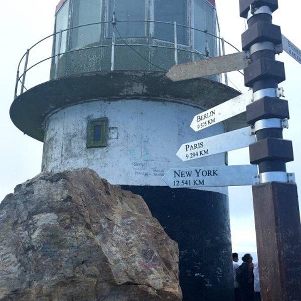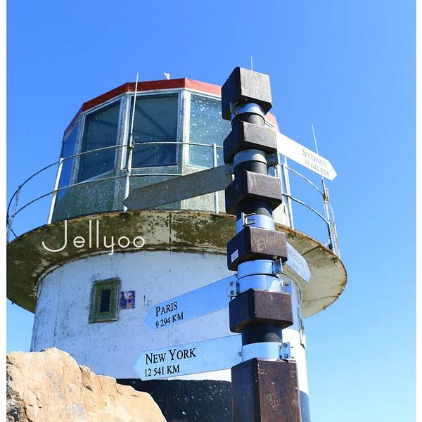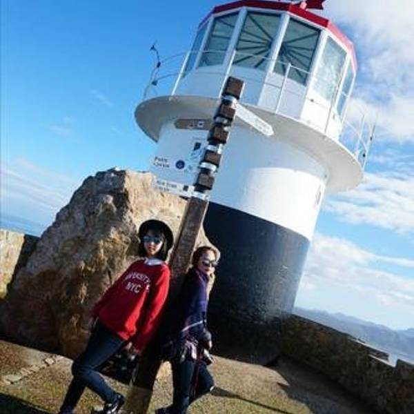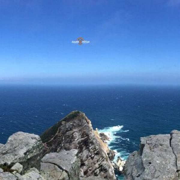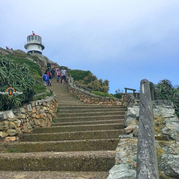 到了开普角景点,需要再购买车票上山,约47兰特,也就20元左右。然后排队坐车上山。上去之后就可以看见灯塔所在的山顶,要走一小段阶梯上去,在灯塔的四周都是观景台,左手边是印度洋,右手边是大西洋,一条狭长的 深入海洋之中。 两边山崖下的海水拍打在山崖上的石头,激起白色的浪花。