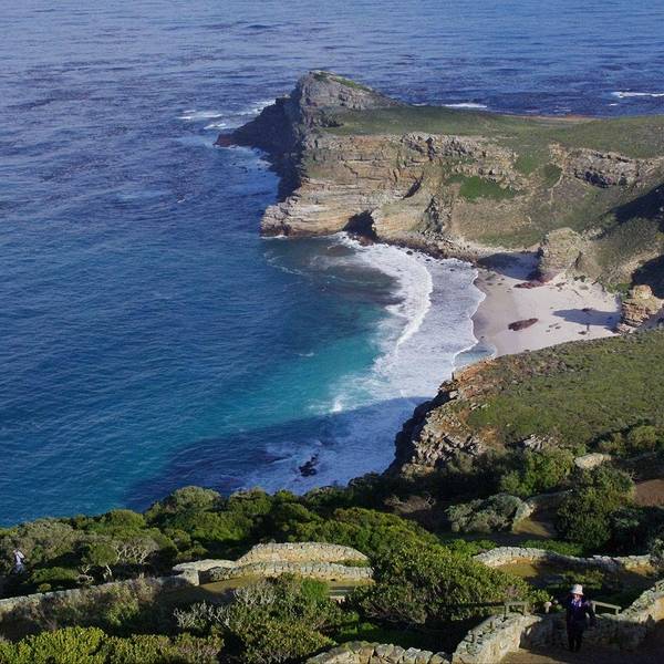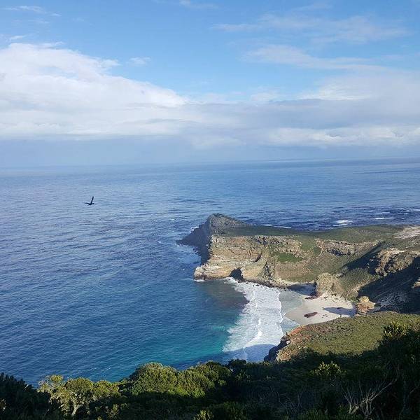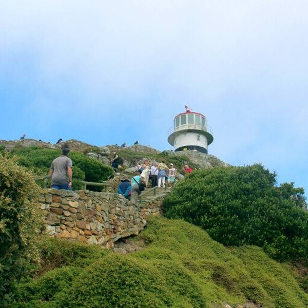 开普角: 好望角里面的一个景点,也就是灯塔山,也就是好望角的最高点。可以眺望大西洋的美景,视角非常的美。也是观鲸鱼、海豚的最佳位置。我们从开普敦市区出发,一路向南,往好望角出发,一路上的人越来越少,进入好望角后,道路的两边都是各种不知名的植被及花朵,时不时还有一些野生动物,如狒狒、鸵鸟等。 当地人说这里约250种鸟类,其中包括海鸟、鹰、花蜜鸟和太阳鸟等等濒临灭绝的鸟类。