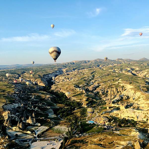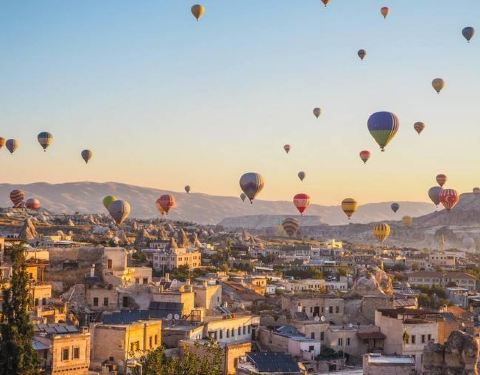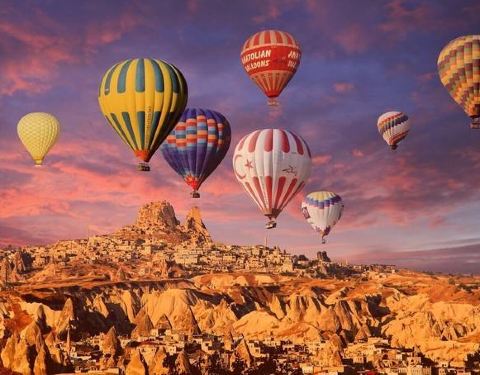 乘坐卡帕多奇亚热气球可谓是来到卡帕多奇亚必做的一件事,乘坐热气球俯瞰卡帕多奇亚全景,欣赏日出、峡谷和五颜六色的热气球。