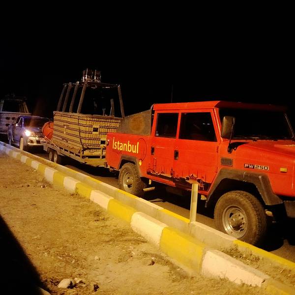 拉着热气球的皮卡车(兴奋中)。 马上升空喽。 特殊地貌2018年6月7日,星期四,晴天