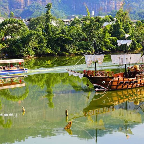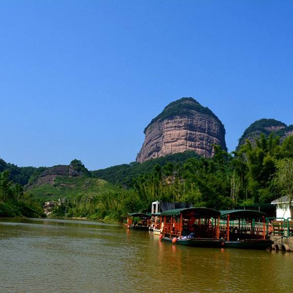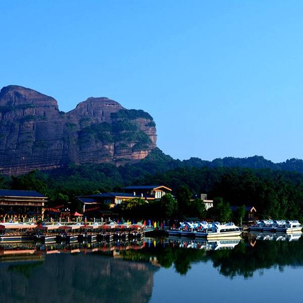 故有“一江贯丹霞”的美称。江面蜿蜒曲折,水流平缓,沿江两岸层峦叠嶂,千姿百态,让游客身临其境,感受大自然的美好。聆听动人的传说,无不使您充满奇幻的遐想与美丽的憧憬。码头园区内景色秀丽、植被茂密葱郁,一年四季如春,平均气温比四周低3-5度,空气清新。游人置身其中,仿佛人间仙境、世外桃源。
