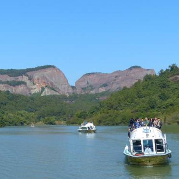 “丹山碧水”,“碧水”指的就是锦江(水上丹霞)。锦江(水上丹霞)似一条玉带自北而南缠绕于丹霞山群峰之中,江水清澈,两岸奇峰倒映,景色千姿百态。来到丹霞山,您务必真正地游山玩水。乘坐水上丹霞游船,即可跟着船长近距离观赏丹霞山群象过江、赤壁丹霞、金龟朝圣、鲤鱼跳龙门、仙人插掌、茶壶峰、观音送子、姐妹峰等二十多处大自然鬼斧神工的杰作,登山后乘船游览水上丹霞,是最佳的选择,既可对比远眺与近观的差别,也能让您更加放松心情和体能。