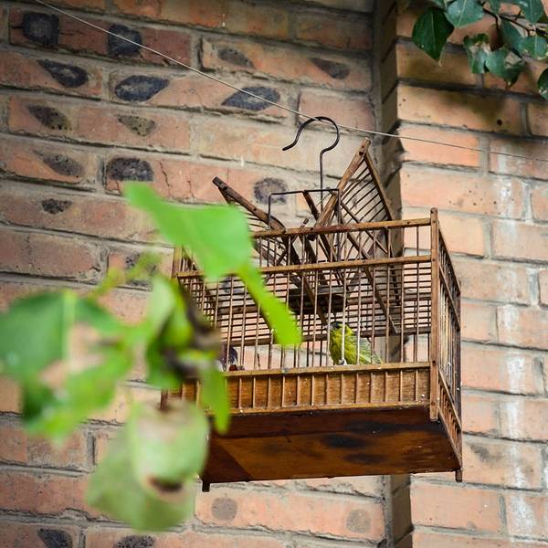 但是对于游客来说,我们看见的,似乎只剩下已经凋敝的昔日辉煌。房屋依然精致,小小的庙堂还有曾经香火昌盛的痕迹。但是因为被埋没多年,疏于管制,很多精美的造像石雕已经损毁,房屋也是破败不堪,行走其中,感觉就是一处孤寡老人聚居地,偶尔可见的笼中之鸟,是屈指可数的生机。房屋的破败,见证了历史,还有一种见证,是墙上随处可见的特殊时期的标语,一字一句,仿佛可见那个年代的慷慨激昂。破损的屋面,长满了杂草,现代化的天线锅,反而显得有些格格不入。破损的门缝里,竟然能瞥见院里已经成熟的大葫芦。最北边的护国寺,是整个建筑群落的制高点,虽然寺里没开放,但是站在最高的台阶俯瞰,还是能把所有的房子收入眼底。
