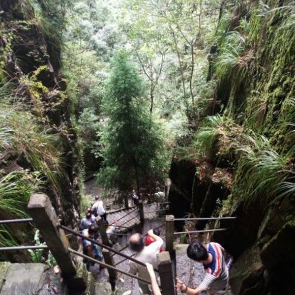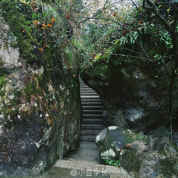 进景区之后有一段山路,小心翼翼踩着湿漉漉的台阶,台阶切得平整,倒也不觉得滑,只是不要碰那些溜溜的石头就好。云就绕在身边,数米之外只有淡淡的人影,如同仙境一般。