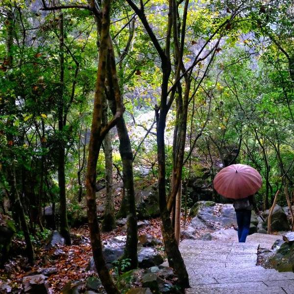 进景区之后有一段山路,小...这次温州之旅最最期待的一个景区就是百丈漈,可不曾想这天公不作美,早上一推开门,哎我去,下雨了。