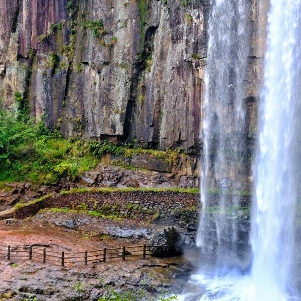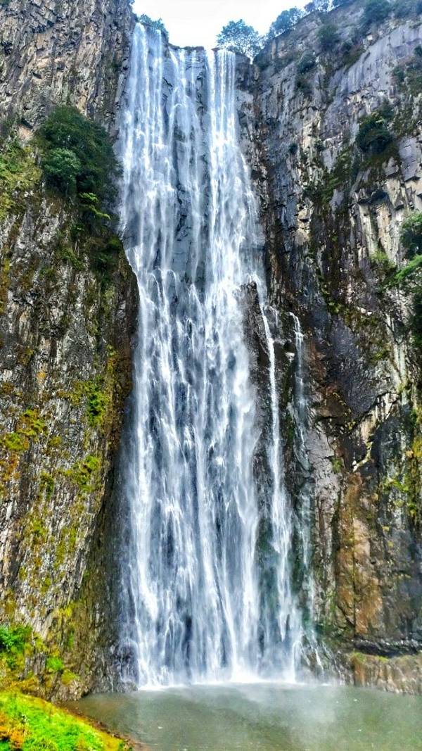 207米的绝壁上的飞瀑气势磅礴,是全国落差最大的瀑布。 穿过二漈下方的水帘洞,感受水雾扑面而来的清凉。