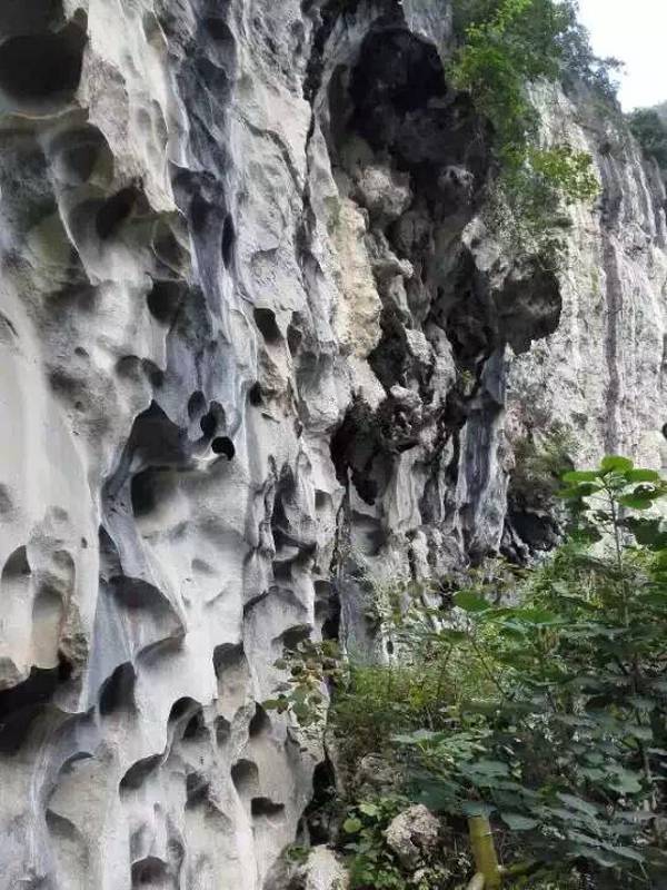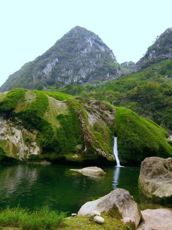 自驾到达关岭县断桥镇坡舟村董扎组后,就开始了我们的冰臼探险之旅。一路徒步,从起点到观赏性较好的瀑布处,全长三四公里,走路观赏拍照要一个小时,年龄太小或者太年长的人不适合,因为要在凹凸不平或需要攀爬跳跃的石头上行进。这里也非常适合露营,起码要半天时间才玩得尽兴。一路上独特的地貌奇观、旖旎的风景、碳酸钙沉积形成的冰臼"石花",石花有一定纹路,像化石一样。小螺蛳密布在水中石壁上,生态非常好。水流落差较大的地方形成了小瀑布。透过清水可以看到水中石壁上美丽的纹路和快速游动的小鱼。一路走着看着眼前美丽的风景,不禁感慨大自然的鬼斧神工。