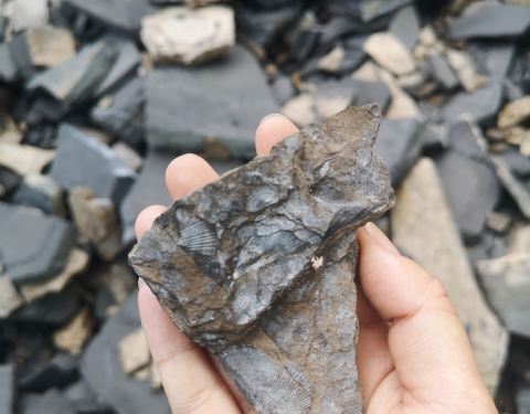 ...快就看完了,然后就欢乐的在后面乱石堆里淘化石,可惜只找到了海百合的茎,听说有发现海百合的叶子的