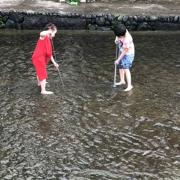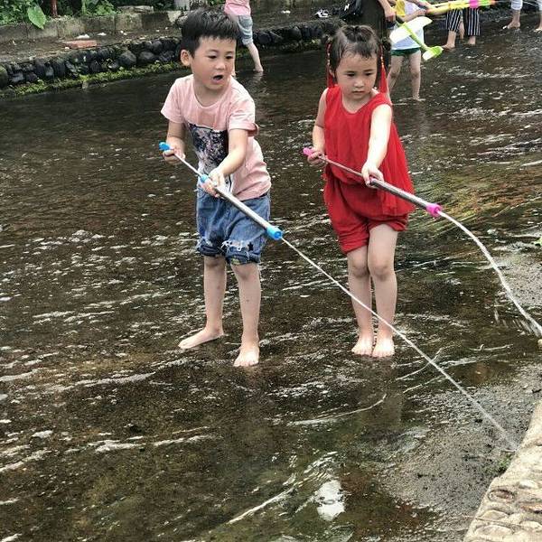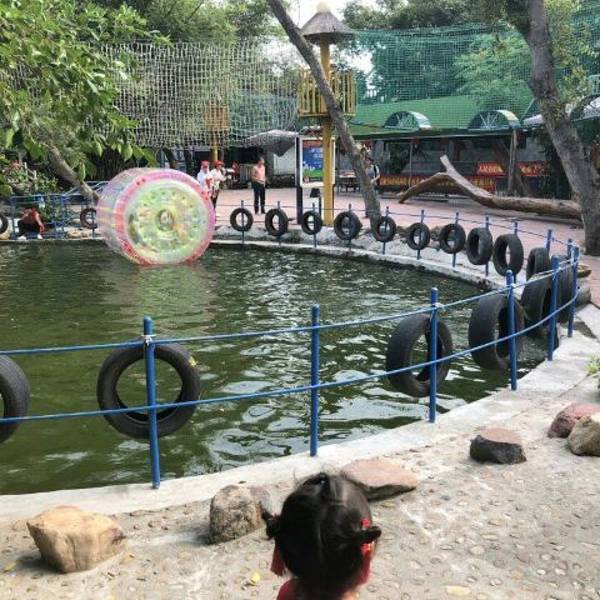 烈日炎炎,园区内有卖遮阳帽的,为了避免晒伤,给宝贝们一人戴上一顶小花帽防晒。虽然气温逐渐上升,但丽田园里青山绿水,让人看着就倍感舒适凉爽,孩子们也玩得不亦乐乎。
