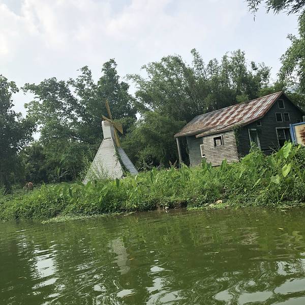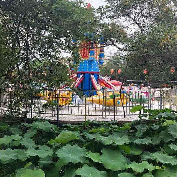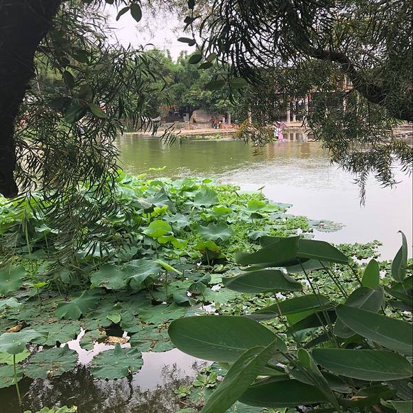 坐完漂流小船后,在园区里闲逛,树荫繁密,清凉怡人。河池里种着荷花,莲叶田田,含苞欲放,景色也是十分迷人。