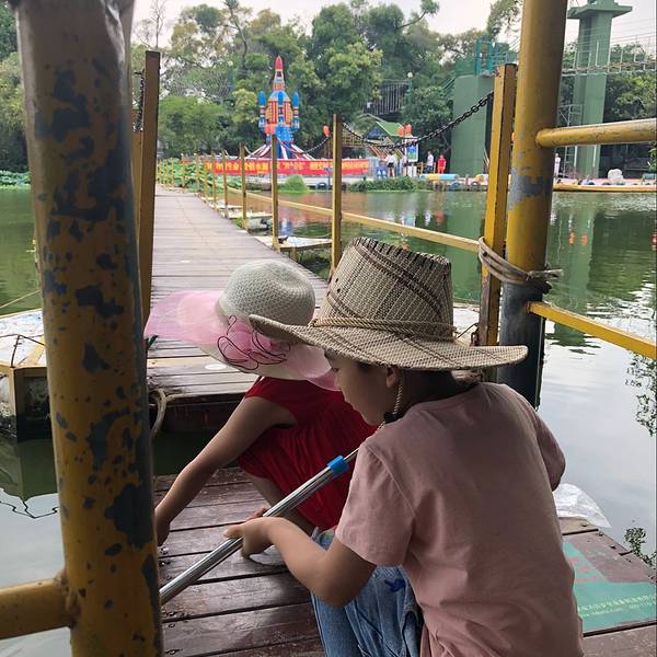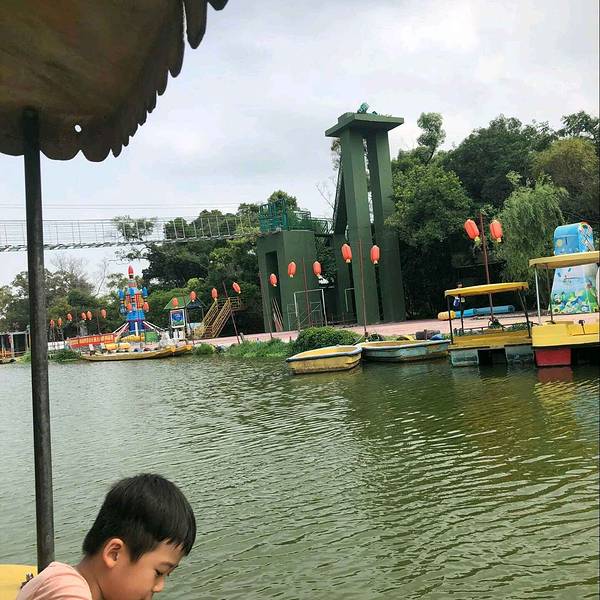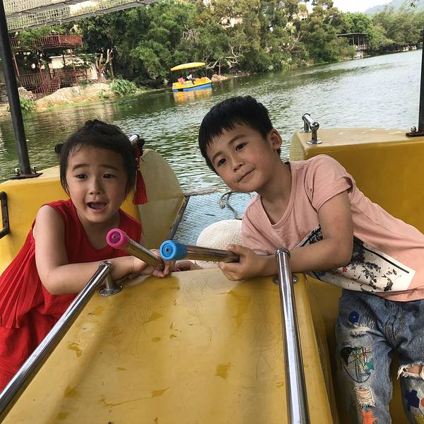 小女儿很喜欢这个水上项目,顶上修置了顶棚遮住了艳阳,小船在水面漂浮的速度也不快不慢,很适合孩子的娱乐。老公在旁边拍照,小女儿开心地比V 。