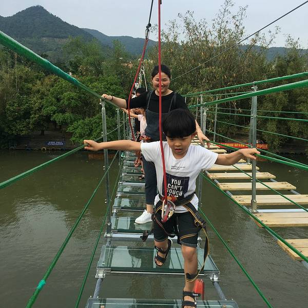 不得不提的还有这个悬在高空的玻璃栈道,虽然身上都绑着安全系数很高的保护绳,面对透明的玻璃下的河...又到周末,难得有机会带上宝贝出门玩。早有听说同安丽田园风景不错,适合亲子游,牵着孩子拉着老公说走就走。这两个宝贝,街坊邻居老夸是瓷娃娃