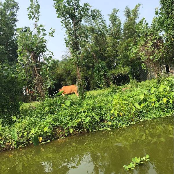 老公带着孩儿们去玩娱乐项目,小屁孩一看到花样繁多的游乐设施就移不动脚了,我在池塘边树下坐了一会儿,树荫的遮蔽下分外凉快,呼吸几口清新的空气,闻着大自然的味道,享受片刻的惬意与宁静,这些都是城市里难以体会到的。继续沿着河边走,看着树林里的老磨坊,窗外的牛啃草,是一种说不出的自由自在。