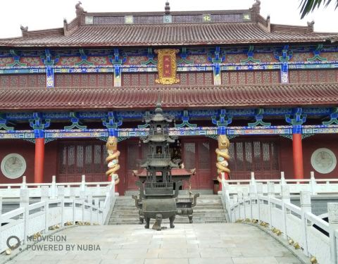 比较令人失望。首先,问当地人大部分都不知道,通过导航查到,地点在郊区了的一个小村里,门口售票处没人,进去后有个胖小伙要了十元门票钱,说网上订票早没了,定了钱也给不到他们。整个道院太冷清了,也没香火,大老远来了,进去吧。既来之则安之,三重主殿,第一重殿供奉是王灵官和四大天王,二重殿供奉的是三清祖师、最后一重殿供奉的茅山师祖的三茅真君。最后面有个八卦转运阵,往门口走时听到打牌的声音...,哎!