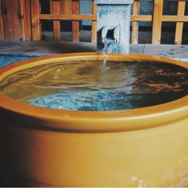 室外有不同温度的温泉池,其中位置在正中间的大池温度是最高的,旁边也有冷水池。