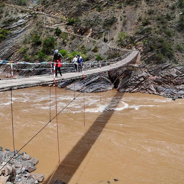 澜沧江新桥、旧桥途中吊桥吊桥上的涂鸦