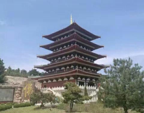 主体建筑是盛唐风格而后是藏传佛寺建筑和佛塔,完全不搭的后现代主义建筑吧。寺内的建筑也浑然不知所云