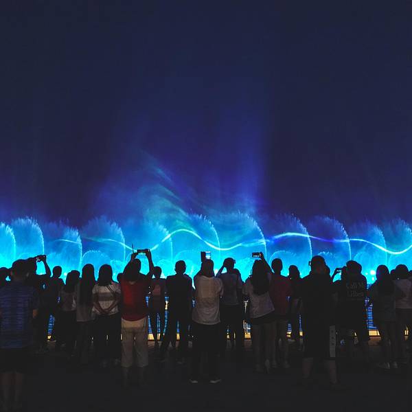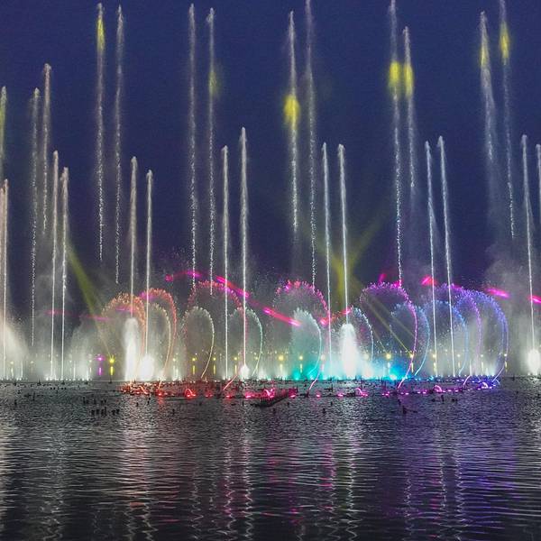 当夜幕降临,华灯初上,南湖又是另一番模样,丹凤朝阳广场,古铜色雕塑上“春夏秋冬”四季变幻。在广场南侧龙泉湾湖面上,是水精灵的秀场。长220米,宽81米的舞台上,湖水随着音乐、随着七彩的镭射光,律动摇摆,身姿扶摇变换;长卷水幕电影、艺术灯光、多变水形在高科技的助力下,为人们呈现出完美的视觉盛宴。● 那年芳华,穿越唐山百年历史
