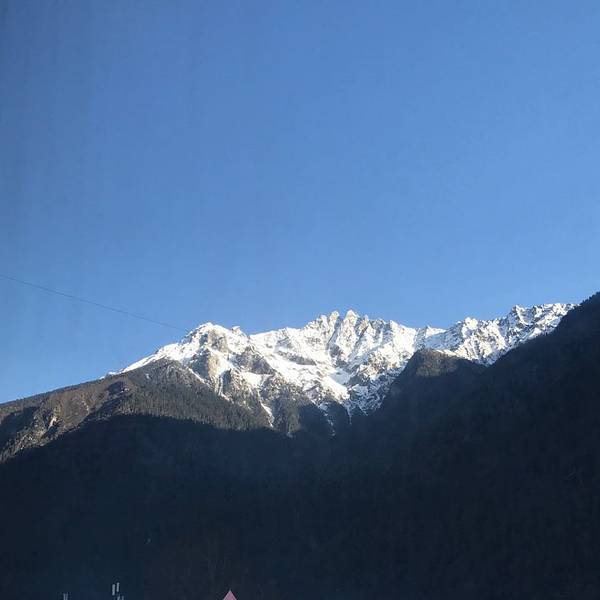 今天行程紧张,先去桃花沟,然...阳光对赏花和拍照太关键了,昨天来波密路上,天气阴沉,周围的桃花不能看清楚,今天一早,从房间里看到日出落在雪山顶,狂喜!