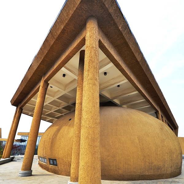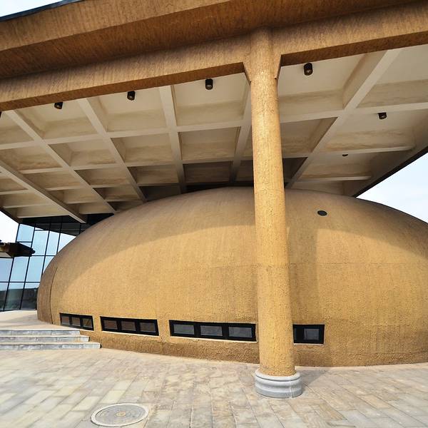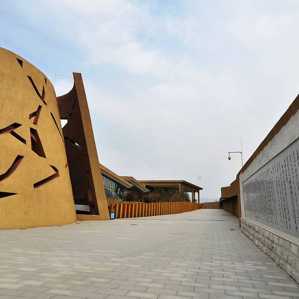 如果说刚才看到的那个黄色“大棚类”建筑是为了保存仰韶文化发掘遗址的话,那么离此不远新修建的“仰韶文化博物馆”就相当成规模大气雄伟了。 我去的时候同样博物馆内游客寥寥无几,更显得它的空旷和宽阔了。 河南省渑池县仰韶村遗址保护区兴建的仰韶文化博物馆7日举行开馆仪式,该馆集文物保护、陈列展示和科学研究功能于一体,为国内首家仰韶文化专题博物馆。 仰韶文化博物馆内设三个专题展厅,第一展厅展出仰韶村遗址三次发掘的主要成果;第二展厅展出仰韶村遗址发现者、瑞典学者安特生在仰韶村和中国其他地方的主要考古活动;第三展厅展出中原地区各个仰韶文化典型遗址出土的226件代表性文物。 在基础服务设施方面,主体建筑西侧设置停车场,采用先上再下的流线组织参观人流,使室外广场、坡道空间、室外展示空间、前庭空间以及颇具特色的冥思空间连接成一个整体,为游客参观提供极大便利。 仰韶文化博物馆的创建具有普及性和学术性双重使命。一方面充分发挥博物馆的收藏、展示、审美、认知四大功能,作为爱国主义、民风民俗教育的基地;另一方面,将立足长远,把该馆办成大型的文化研究中心乃至国际性的文化交流中心。 仰韶文化博物馆始建于2009年1月,2011年10月28日竣工。该馆占地43亩,建筑面积4700平方米,总投资5130万元。
