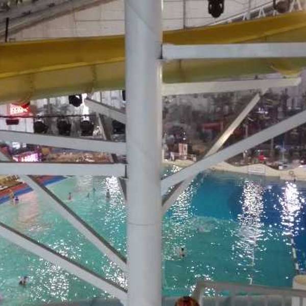 又名“温都水城水空间”,建筑面积约20000㎡,其屋顶可开启是目前亚洲比较先进的以水为主题的水上娱乐场馆,可同时容纳3000人,建筑形式为点式玻璃幕墙外加曲线屋顶。