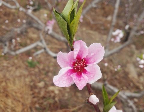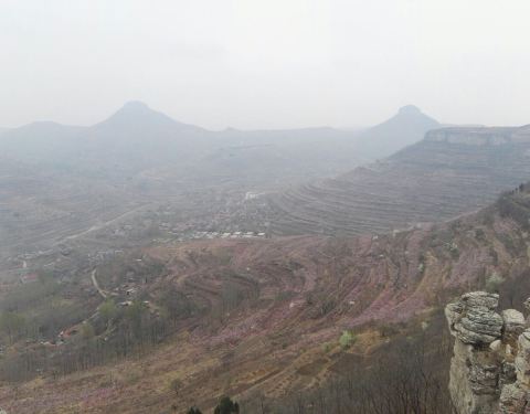 心真暂借西洋镜, 莫怪自然见美琼清明 • 岱崮 清明踏青岱崮行, 夹道蜜桃浴春风; 崮上草原已返青, 崮下遍野桃花红; 神佛崮立佑众生, 远眺双崮圣女胸; 心真暂借西洋镜, 莫怪自然见美琼!