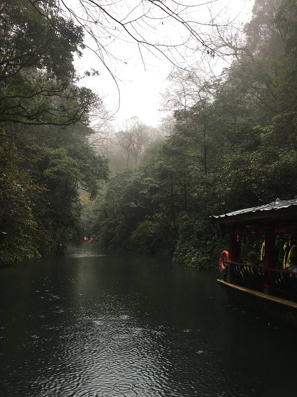 很便宜的船费,才2元,相对于山上的食物而言。山上的绿色植物倒映在水中,感觉水都是绿色的呢
