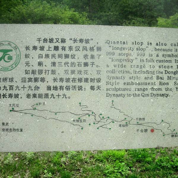 从剑川县城的景风公园往西走大约1.5公里,就到了千狮山景区,很近从剑川县城的景风公园往西走大约1.5公里,就到了千狮山景区,很近。一进大门,左手是一幅巨大的导游图,导游图边上就是几百级石阶的长寿坡。一层层石阶看不到尽头,脚稍微有些吃不消。惊喜的是路边随处可见的石狮...从剑川县城的景风公园往西走大约1.5公里,就到了千狮山景区,很近。一进大门,左手是一幅巨大的导游图,导游图边上就是几百级石阶的长寿坡。一层层石阶看不到尽头,脚稍微有些吃不消。惊喜的是路边随处可见的石狮子呀,明显有些年头,长满苔藓的,就着山岩雕刻的,更是千姿百态,眼睛都看花了。 展开