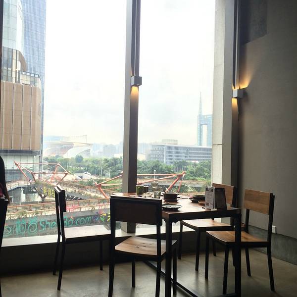 在高德置地冬广场,就地理位置来说比较偏了点,不过还算好找。店面装修风格比较简约,不过靠窗边和沙发位需…