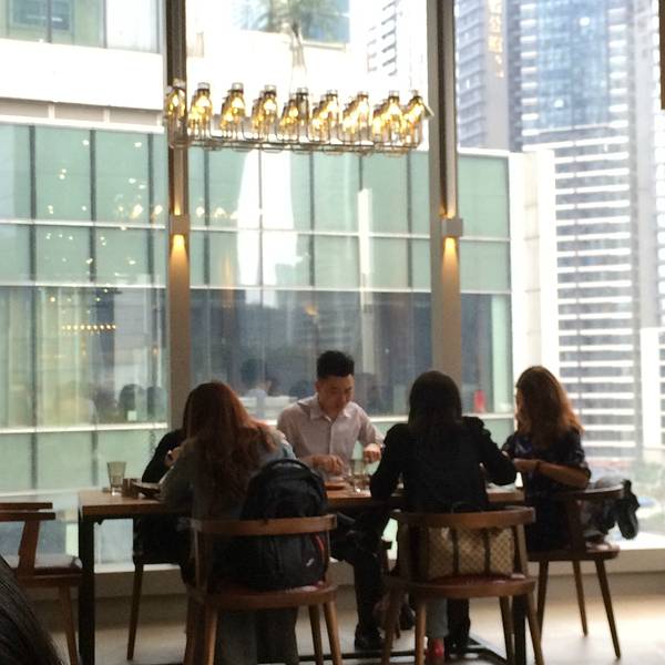 装修不错很大气,服务很差,食物很一般。不想再来了! the eating table,位于广州市天河区高德置地冬广场4楼。附近交通便利,有地铁三号线和五号线交汇站珠江新城站,还有地铁APM花城大道站。临近高德置地和广州友谊商场国金店,购物完过来吃饭,很方便。 工作日来吃set lunch,人均从48-68元不等。餐厅装修很不错的,工业风,黑色沉稳,木桌子。靠窗边座位直望花城广场。餐厅挺大的,位置挺多。 但是很多桌子空着也不给客人,差评!SET LUNCH是从1\2\3类食物中自由组合,1+2=48元,2+3=58元,1+2+3=68元吃了2个68元的SET LUNCH:# 鸭胸配柳丁汁#,柳丁汁就是诚挚,放在针筒里面,挤出来洒在鸭胸上,造型有趣,但是鸭胸很干。# 冬阴功龙利鱼# 龙利鱼好少,只有几块,汤底也不够酸辣,一般。沙拉和例汤二选一,沙拉不错,沙拉酱也好吃,二选一建议沙拉。例汤是罗宋汤,味道可以,分量精致。饮料,咖啡或者冻柠檬茶二选一。要柠茶走冰也不可以,服务员说只能做冷的,不要冰会分量少很多。她说只能少冰,然后让我们自己把冰挑出来。后来要了少冰,自己把冰跳出来,少冰的分量都有半杯冰,真是吝啬得令人无语。柠茶不值钱,需要这样吗??!!关于服务,要好好写一下,大大的差评!!! 工作日午餐找地方吃饭,12点到冬广场,本来上5楼吃日本料理,已经开始等位。马上转场到楼下的THE EATING TABLE,貌似还没有等位。 门口没有接待人员带位,入到餐厅很迷茫自己找位置,服务员也不帮忙,叫我去门口拿号等位,我告诉他们门口没有人,带着我游花园,餐厅回到门口,又门口回到餐厅。我见有张空台问可不可以给我,服务人员话有人预定了,不行。带完我游花园,最终就是把那张空桌给了我。这样的服务态度和水平,我真是无语。 吃饭上菜很慢,从12:30点菜,其中一个套餐的主食等到13:40才上,再次无语。饿晕了。