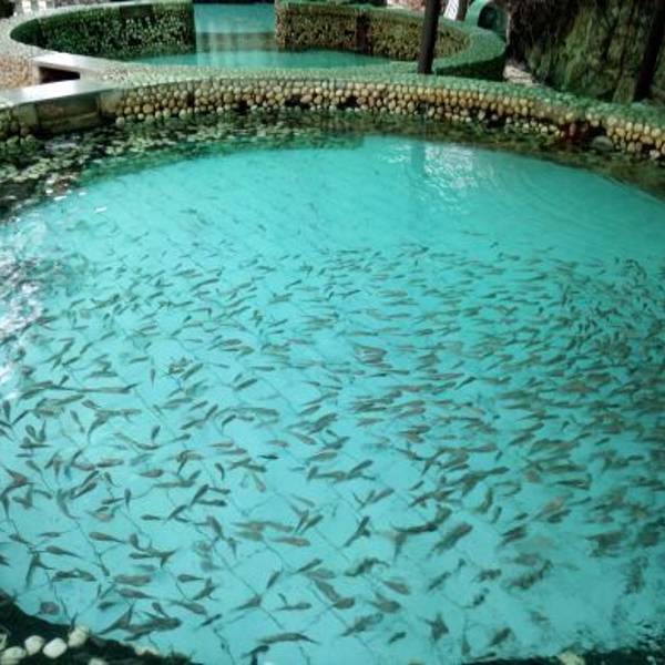 ...,最后在石板泉那躺着休息很舒服,自助餐品种多,味道棒,只是亲亲鱼那要收费,设施比较老,整体满意从上午11点一直玩到晚上六点多,环境优美,地方很大,分上下两个区,池子30多个,最后在石板泉那躺着休息很舒服,自助餐品种多,味道棒,只是亲亲鱼那要收费,设施比较老,整体满意
