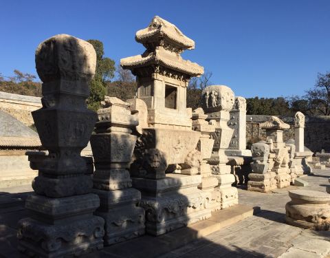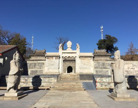 墓园在胡同里,整条胡同还挺繁华的。想当年估计是荒郊野外,因为城市扩张,现在也是热闹的地方了。从胡同马路边向上走个缓坡就到大门。墓园新维修过,所以不会有什么破败感,像个小公园。地面建筑有的只剩下了遗址,碑亭感觉是重修的,很完好。可以从坟包旁边的走道下到墓室中。不过因为人少,下去前要自己开灯,出来后自己关灯。平时这里来的人不多,不过也有三两个游人,很安静。这里距离法海寺不远,可以一同游览。