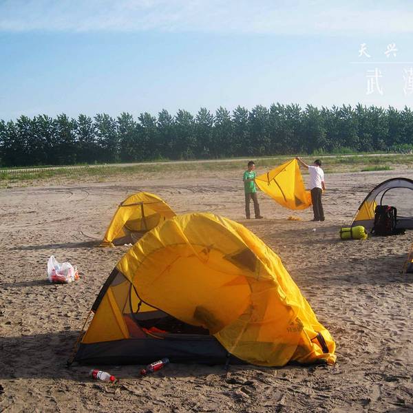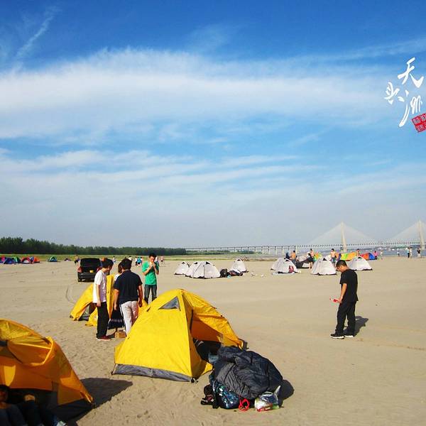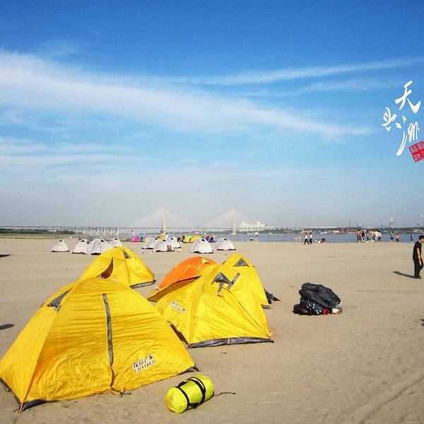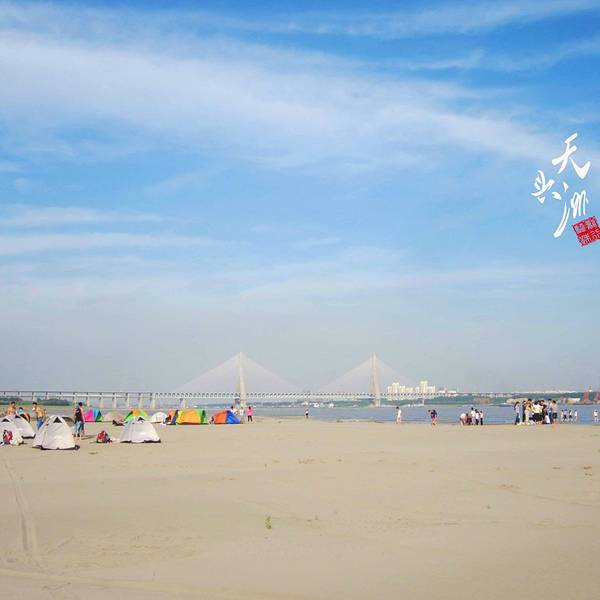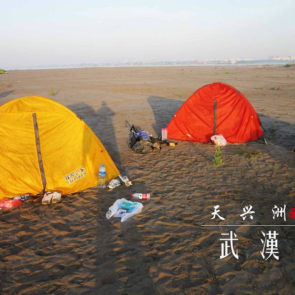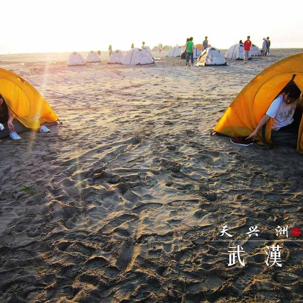 【Day 1】背着帐篷前往天兴洲 天兴洲几乎是武汉最佳旅行户外地!这里暂时还没有收费的要求,但是他的风景绝对比一般的旅游景点要好玩。位于武汉市青山区青山镇、江岸区谌家矶所夹的长江段江心,具有得天独厚的原生态江岛风情景观资源,四面环长江!关于交通:可以做武汉地铁4号线到园林路A出口下车,然后做616公交到建设十路和平大道口下车。沿着天兴洲方向走400米左右开始坐轮渡,2.5元一位。到了天兴洲往左边走可以去他的沙滩边上玩,路程有点远但是景色超级美!建议带帐篷去露营!对于户外的人而言它在武汉几乎处于绝对优势的地位,缺点是沙滩旅行没有水源和食物,需要自带! 天兴洲,原名江心洲。位于武汉市青山区青山镇、江岸区谌家矶所夹的长江段江心,具有得天独厚的原生态江岛风情景观资源,四面环长江,面积约26平方公里,东西长13公里,南北宽约2公里。天兴洲上头有直劈长江分二的恢弘,洲尾有两江翻腾合一的豪迈、中间有细细的沙滩、摇曳的芦苇、鸬鹚、候鸟、乌龟、草鱼、鲶鱼等,还有遍布洲岸的绿绿青草地都让人们无限向往。天兴洲近年来以年均110米以上的速度向下游漂移,且漂移速度正在加快。昔为荒岛,1949年后围垦,已经阡陌相连,为武汉市的瓜果生产基地,盛产西瓜、香瓜、南瓜、冬瓜、洪山菜薹、小白菜、包菜、苋菜、棉花等果蔬菜,北岸有渡口,南岸有码头与汽车轮渡。行政上为天兴乡,隶属武汉市洪山区。 我们前一天查看了天气预报,感觉应该有太阳,但是也不确定临时说明早出发如果下雨就临时取消。结果那天刚好是雨后天晴,你懂得,出远门就应该是这种天气啊,于是早上八点起来了。确认天气没有问题之后通知了大家八点半校园门口集合,然后差不多九点人到齐了之后搭车前往虎泉附近到租的地方那取帐篷。到了之后交了押金,我们几个男生把所有帐篷拿下去分配好了之后开始正式出发去搭地铁了。 帐篷是租的,以前喜欢参加户外运动认识的社团里面有这种帐篷租,另外喜欢经常露营的也可以网购一个。 从附近地铁站做武汉地铁4号线到园林路A出口下车,然后做616公交到建设十路和平大道口下车。沿着天兴洲方向走400米左右开始坐轮渡,2.5元一位。到了天兴洲往左边走可以去他的沙滩边上,抵达目的地就安营扎寨。