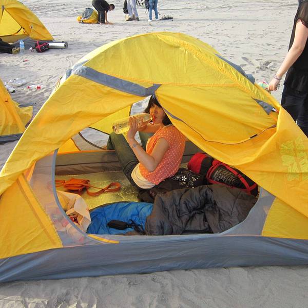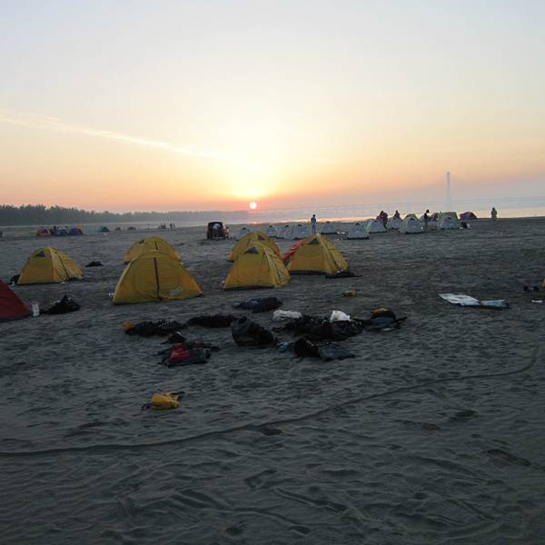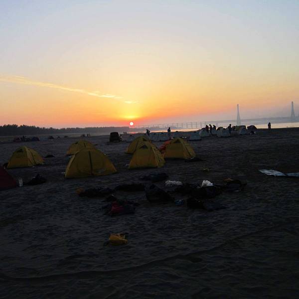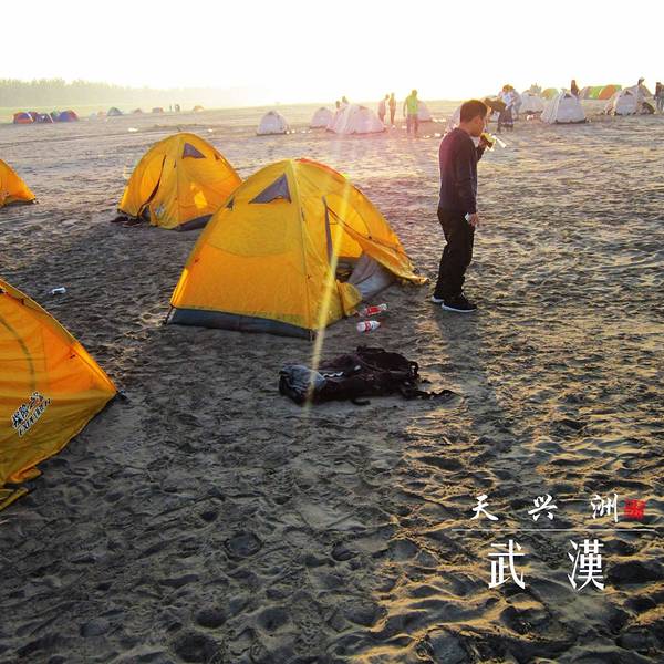 【Day 2】武汉的沙滩,别样的日出 关于日出:如果说在武汉多年我没有见到很好的日出,那是因为武汉这几年被雾霾淹没得早已不再是当年印象中的他了,但是那一晚,睡醒了之后看到武汉的江边日出,绝对是惊人的。不仅仅是长江边,而是这个由三镇组成的城市依旧有着他独自的魅力。 关于露营:早上醒来放眼望去都是帐篷,带着雾气我们依旧很是向往这个江边的沙滩。远远的看着隔壁华师的人再收帐篷,另外一女生说好喜欢这要不再多玩一会,听到他说这个我也是醉了,你可知道这是大热天并且昨晚都没吃饱呢。不过清晨的露营景色值了。 离开前准备:另外的队伍帐篷收的早些,我们则是在人家收了之后再走的。另外不要的东西就别带走了,但是不能放在沙滩上,可以带到上面的路边。另外什么纸啊,瓶子了都要带走,因为这是武汉最后的净土,爱他,请别污染他。