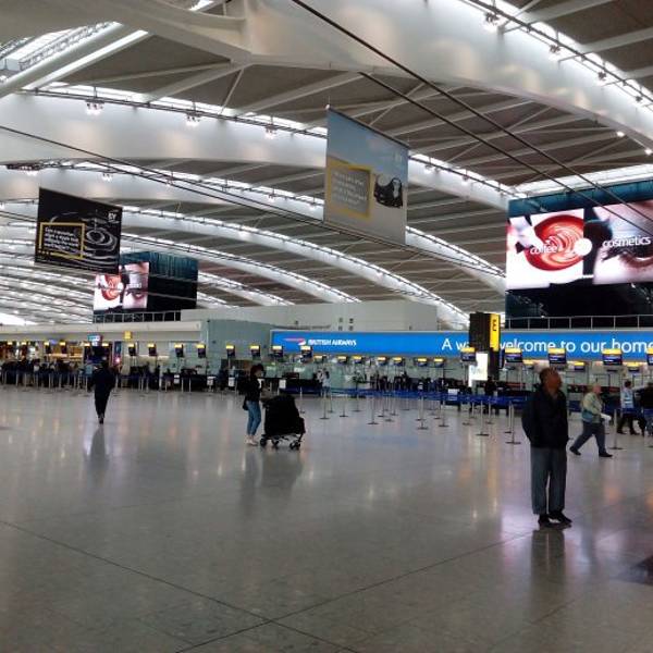 希斯罗机场(Heathrow Airport,LHR)是伦敦最大、最繁忙的机场,位于伦敦西部,距市中心约15英里(24公里)。机场一共有5个航站楼,国航使用2号航站楼,维珍、国泰航空一般使用3号航站楼,东航、南航使用4号航站楼。机场还为旅客提供4小时免费Wi-Fi。