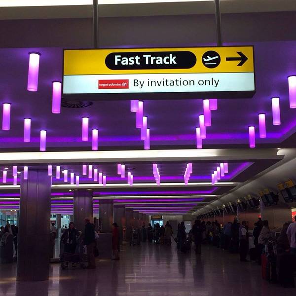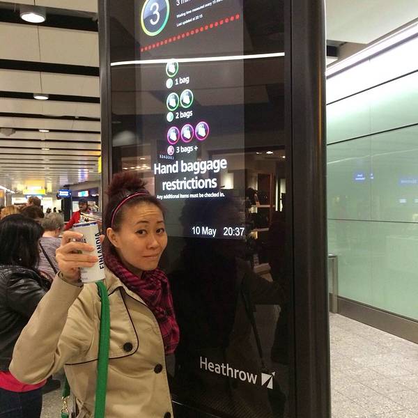 喝过下午茶就匆忙来到机场了。这表情是因为过安检被她害惨了。维珍航空的手续登记区高级多了。还说比我坐飞机要多!果味Vodka入境的时候以为机场不大,离境的时候发现这里也太大了,街没逛完还竟然要走20分钟的登...喝过下午茶就匆忙来到机场了。这表情是因为过安检被她害惨了。维珍航空的手续登记区高级多了。还说比我坐飞机要多!果味Vodka入境的时候以为机场不大,离境的时候发现这里也太大了,街没逛完还竟然要走20分钟的登机口。信息屏也很人性化,把这里到每个登机口的步行时间都写着,以免错过航班,但是我们也是因为这个信息屏,误导我们以为要错过航班,明明是Delay了,却显示Close,让我们以为错过航班。一开始还把登记口显示错误了,从1变成34登机口,这可是20分钟的路程啊。人性化的地方在于会显示登机口的步行时间,让旅客能充分安排好时间。国内暴雨,听说深圳的旅客都走不了,交通枢纽全关闭了,看来暴雨很厉害。我们的旅程随着暴雨结束了。