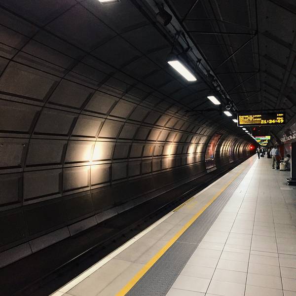 在机场顺着指示标识,一路走到乘坐希斯罗快速列车的站台。快到站台时的路上就有自助售票机,我顺便买了车票(21.5镑,好贵)。