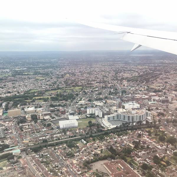 从广州直航飞到伦敦约11小时30分,三四部电影的时间就到了,从飞机上可以看到伦敦的建筑多为社区型的小房子,一圈小房子包围着一个足球场或者花园的布局伦敦胖大叔的欢迎照